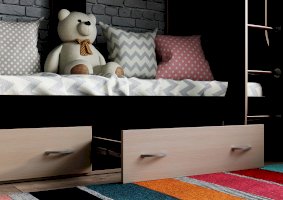- Нижнее спальное место дополнено двумя выдвижными ящиками на роликовых направляющих